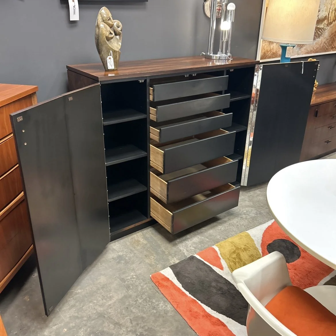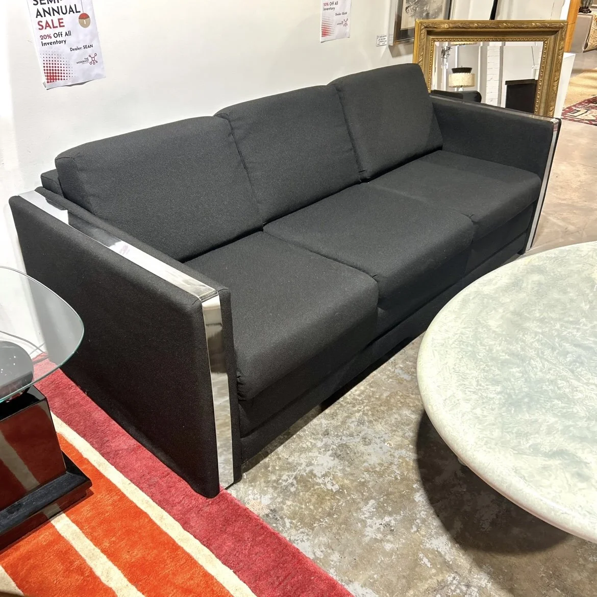Categories: All MCM Furniture Art Lighting Decor Apparel Accessories Vintage All | MCM Furniture | Art | Lighting | Decor | Apparel | Accessories | MCM Open Frame Lounge Chair by Lawrence Peabody $2,250.00 Teak Sideboard & Hutch w/ Lighting & Shelving $1,650.00 Two Drawer Teak Chest by Hans Wegner for Ry Møbler $1,350.00 Set of Five Niels Otto Møller Teak Dining Chairs $4,195.00 Chrome Trim Tuxedo Sofa in Black Upholstery $1,250.00 Westnofa Danish Rosewood Eight-Drawer Dresser $1,295.00 Biomorphic Kidney Shaped Coffee Table $2,150.00 Cube Chrome Trim Tuxedo Accent Chair $425.00 1970’s Chrome Dining Table & Four Chairs Set $650.00 Clean Lined Plinth Base Boucle Sofa $1,100.00 Vintage Midcentury Tall Metal Lamp $595.00 Vintage Yellow Space Age ABS Plastic Cube Table Lamp $225.00 Vintage Marble Base Task Lamp $239.00 70s Space Age Stacked Orb Lamp $195.00 Pearlescent Flame Lamp $275.00 Art Deco Chrome Desk Lamp (c. 1930s) $350.00 MCM Magazine Rack $75.00 60's Dansk Ice Bucket $195.00 Rattan Hamper $38.00 Vintage Handcrafted Ceramic Caddy $100.00 Vintage Ruby Red Bubble MCM Glassware $49.00 Vintage German Art Deco Candleholder $130.00 Danish Teak Cheese Slicer $30.00 80s Empire Art Products Faux Granite Mantle Clock $150.00 Male Torso Sculpture by Sergey Eylambekou $249.00 Graves Teapot $48.00 Asymmetrical Speckle Glazed Studio Pottery Piece $75.00 Brutalist Curtis Jere Style School of Fish Sculpture $189.00 Charles & Ray Eames Radio (c. 1946) $325.00 Vintage Brutalist Candelabra $95.00 Vintage Authentic Lizard Bag $140.00 80s Vintage Gucci Style Satchel Bag $54.00 Vintage Gucci Yellow Suede Shoulder Bag $395.00 80s Vintage Yellow Knit Vest (M/L) $38.00 Diane Von Furstenberg Sequin Pencil Skirt (S/2) $44.00 80s Vintage Fur Zip-up Coat/Jacket (L) $200.00 80s Vintage HERMES Quilted Button Up Jacket (44 Reg/L) $650.00 70s Vintage Brown Leather SEARS Coat (44 Reg/L) $125.00 70s Vintage Green Sweater (S) $42.00 80s Vintage GAP Sweater (L) $48.00 70s Vintage Black Leather Coat (S) $195.00 Vintage Rust Suede 70s Jacket (S) $88.00 Vintage Floral Blouse w/ Tie (M/L) $28.00 Vintage Mikasa 2-Tier Tulip Serving Stand $35.00 Cassius Quilt Sofa Bed in Mozart Masala by Innovation Living $1,999.00 Handcrafted Wood Marquetry Coffee Table Signed B.W. Tribble $1,175.00 Mid Century Modern Walnut Nine-Drawer Dresser $850.00 Paul McCobb Glass Front Cabinet $895.00 1970’s Chrome & Black Marble Coffee Table $625.00 Mid Century Modern Tripod Desk $495.00 1950’s Heywood Wakefield Desk $895.00 1970’s John Widdicomb for Mastercraft Brass Coffee Table $1,175.00 1960’s Pair of “Viscount” Brass & Walnut Chairs by Dan Johnson for Selig $1,950.00 Set of Six Brno Chairs in Cognac Leather by Mies Van der Rohe for Knoll $2,295.00 Executive Table Desk in Walnut by Florence Knoll for Knoll Associates $3,200.00 1950’s Aldo Londi for Bitossi Handcrafted Cream Pottery Lamp w/ Original Shade $695.00 Pair of Fluted Mid Century Modern Lamps $895.00 Yellow Coconut Slice Style Chair w/ Chrome Legs $595.00 Podium Four Piece Modular Sectional Sofa Copenhagen by Gus Modern $5,479.00 Four Hands Olivia Square Coffee Table in Iron Sale Price: $694.00 Original Price: $1,389.00 Sale 1960’s Set of Five Cassina “Carimate” White Lacquered Chairs by Vico Magistretti $795.00 1960’s Storage Chest / Bench by Lane $525.00 Dash Coffee Table in Calcutta Marble $899.00 Vintage Credenza by Florence Knoll w/ Leather Pulls $1,695.00 1950’s Folke Ohlsson for Dux Lounge Chair $1,595.00 1960’s Nine Drawer Dresser $1,095.00 1960’s Florence Knoll Angle Iron Table $925.00 Sold out Early Mid Century Modern Charles & Ray Eames “LCM” Chair $950.00 1960’s Mid Century Modern Drexel Dresser $1,100.00 Sold out Set of Four Janus Et Cie Noodle Chairs $2,400.00 Set of Seven Space Age Dining Chairs by Daystrom $625.00 Vintage 1990’s Post Modern Amisco Style Rocker $250.00 Set of Six Vintage Chrome & Leather Gio Ponti Style Dining Chairs $1,295.00 1960’s Rosewood Dresser by David Parmalee for Founders Furniture $2,895.00 1960’s Rosewood Armoire by David Parmalee for Founders Furniture $2,395.00 1964 Larsen Style Reclining Solid Frame Lounge Chair & Ottoman $2,495.00 Beam Sectional Qs 3458 Q Walnut Leg by Younger Furniture $4,969.00 1980’s “Mandarin” Chair $550.00 Pair of Slate Top Solid Walnut End Table by Jack Cartwright $395.00 Sold out 1962 Svend Aage Eriksen Solid Teak Lounge Chairs $2,900.00 Hollywood Regency Triple Brass Dolphin Coffee Table $690.00 Sold out 1950’s Pair of Lounge Chairs W/ New Upholstery $1,495.00 Sold out 1971 Original Andy Warhol Tate Gallery Framed Poster $695.00 1975 Monumental Hard-Edge Colorado Based Painting $2,100.00 Storme Sofa in Ivory $1,669.00 Storme Chair in Ivory $849.00 Restoration Hardware Marble Top Chrome Base Coffee Table $895.00 Wool Black & Purple Moroccan Rug $580.00 Puzzle Coffee Table $1,159.00 1960’s Hans Wegner “AP6213” for AP Stolen Teak Framed Sofa w/ Mohair Upholstery $3,995.00 Sold out Mid Century Modern Illum Wikkelso Walnut & Glass Coffee Table $1,150.00 Sold out Eight Drawer Dresser in American Elm by Milo Baughman for Drexel $1,395.00 Sold out 1970's Space Age Fiberglass Sofa by Chromecraft $3,495.00 Sold out 1960's Leather & Solid Walnut Lounge Chair by Adrian Pearsall $1,795.00 Sold out Paul McCobb “Squirm” Highback Lounge Chair Sale Price: $895.00 Original Price: $1,295.00 Sold out 1952 Walnut King Sized Headboard w/ Hidden Storage by Milo Baughman for Glenn of California $2,695.00 Sold out 1970's Executive Desk in Rosewood by Febrü, Germany $2,195.00 Sold out Mid Century Modern Chrome & Burlwood Console Sofa Table By Drexel $875.00 Sold out 1970’s Space Age Chromecraft Tulip Dining Set $1,795.00 Sold out Mid Century Lane Acclaim Coffee Table $675.00 Sold out 1970’s Vintage Chocolate Colored Velvet Teddy Schweiger Teddy Sofa $2,500.00 Sold out 1950’s Sculpted Settee Sofa by Russell Wright for Thonet $845.00 Sold out 1960’s Danish Teak Credenza by 